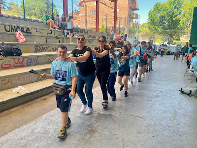 Ya tod@s os grupos en Guadalupe, montamos en el bus para ir al frontón Soroeta, donde nos uniremos al resto de los deportistas para disfrutar de la comida.
